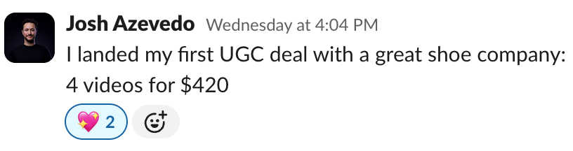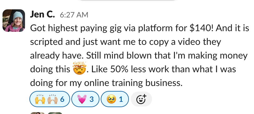 Plus, all of these badasses who earned over $2,000 as beginner UGC creators in their first few months: Kelli, Katie, Goldie, Will, Jenefer, Rebecca, Jess, Ken, Lenae, Jules, Mary, Hannah, Taylor, Emma, Elizabeth, Chelsea, Erica, and so many more!!