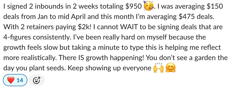 ✔ YOU HAVE A COMMUNITY of amazing humans and fellow UGC creators who are all rooting for each other. New biz besties!
